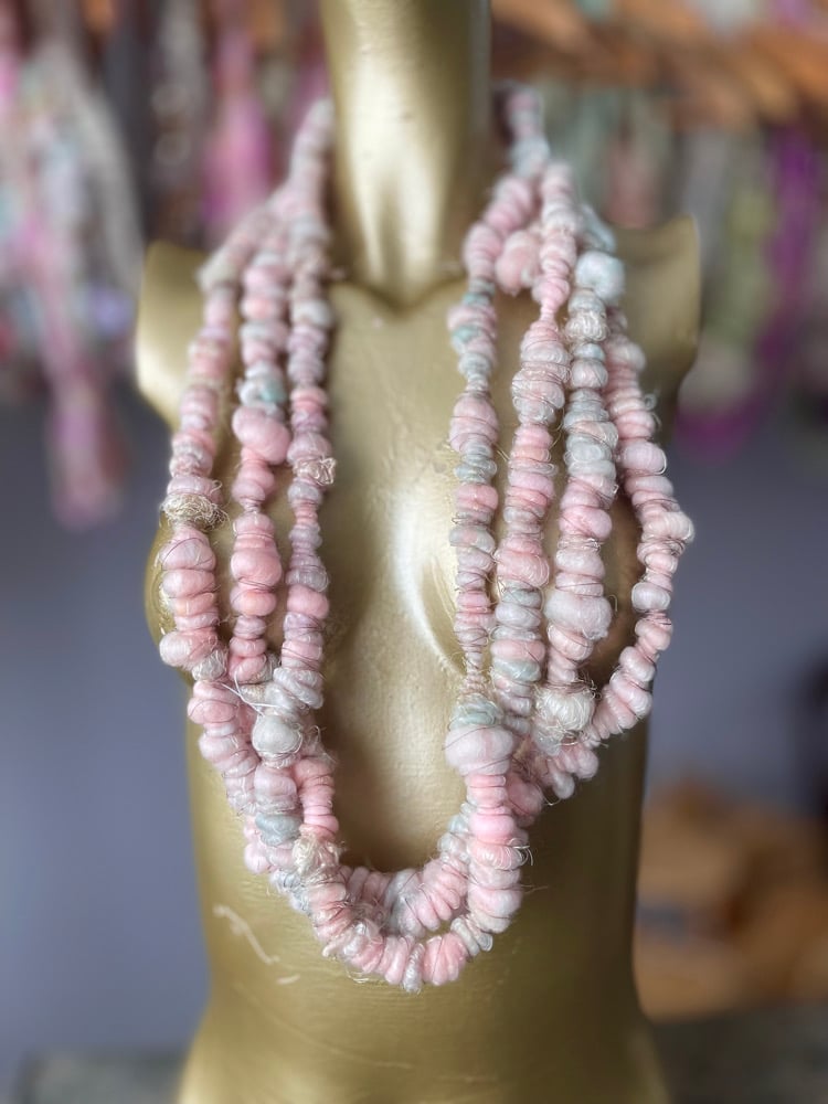 This is a bubbly corespun and plyed yarn with silk and fine merino.