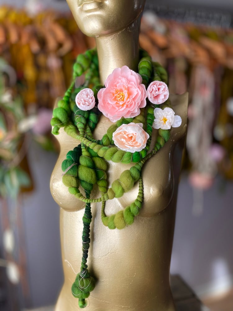 A nice bubbly hand dyed fine merino & fabric flowers.