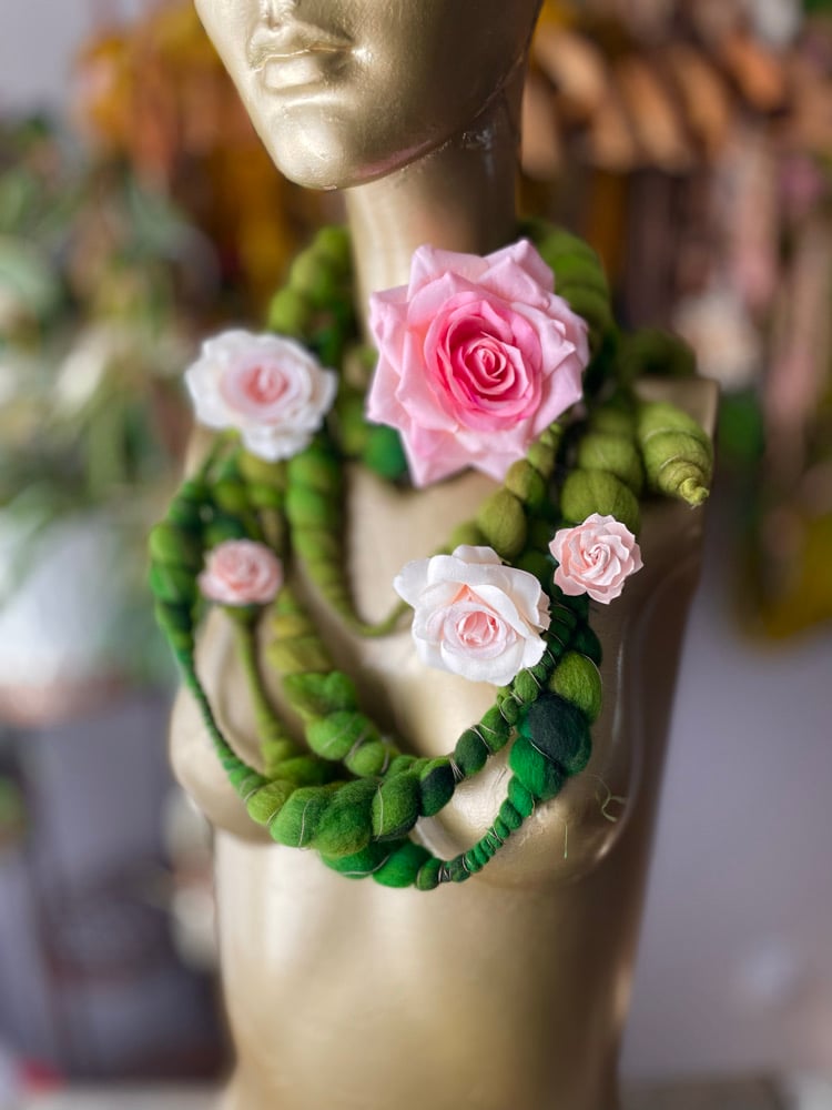 A nice bubbly hand dyed fine merino & fabric flowers.