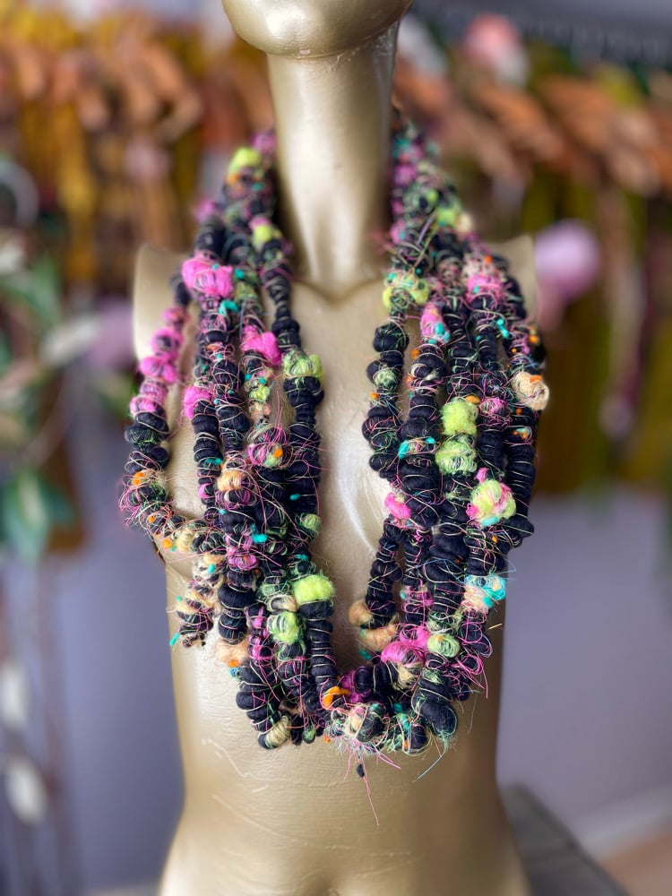 This is a nice bubbly yarn with sparkles, wool nepps, silkies and fine merino.