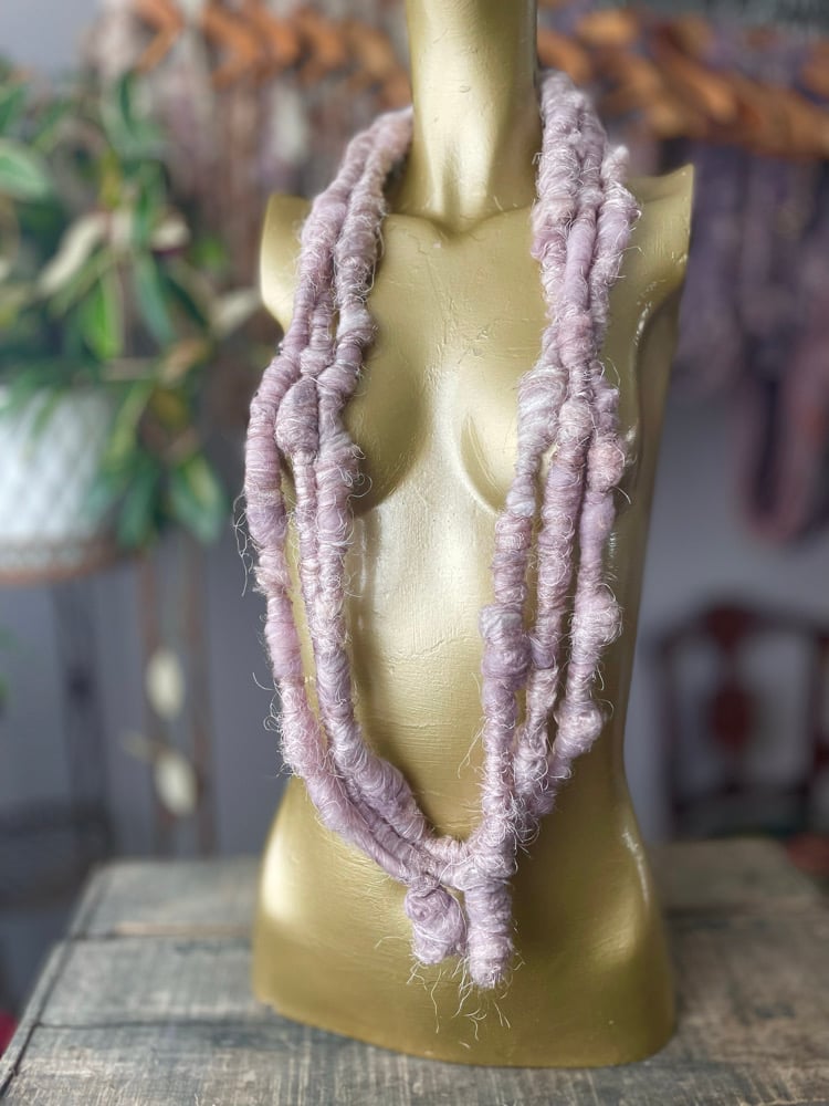 Always knot your ends with a plied or corespun yarn so they do not unravel while you weave or if you are using it as fringe.