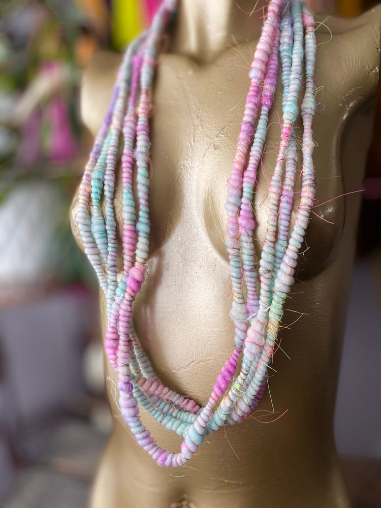 This is a teeny coil yarn with silkies & sparkles & fine merino.