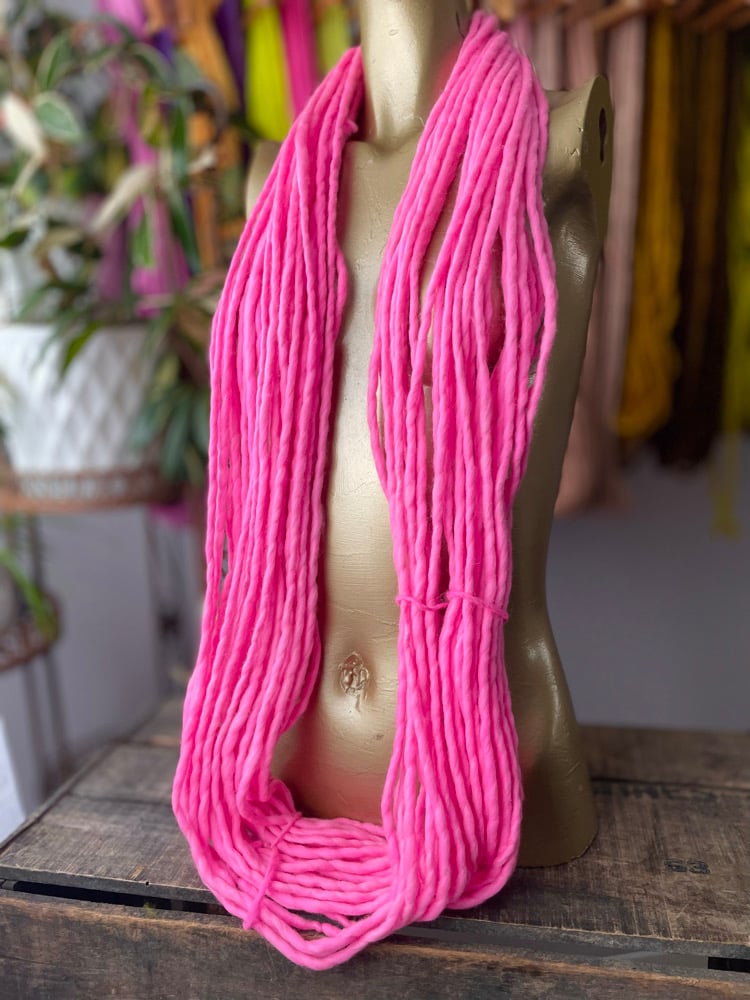 This is a nice super bulky fine merino single yarn made in a Canadian mill. It may have a slub or two which is real annoying if you are knitting but ok for weaving. It may not be 100% perfect but its pretty good!