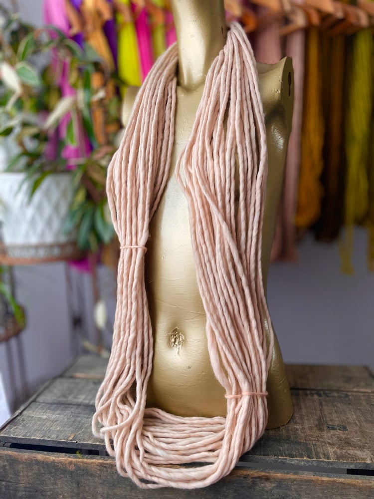 This is a nice super bulky fine merino single yarn made in a Canadian mill. It may have a slub or two which is real annoying if you are knitting but ok for weaving. It may not be 100% perfect but its pretty good.